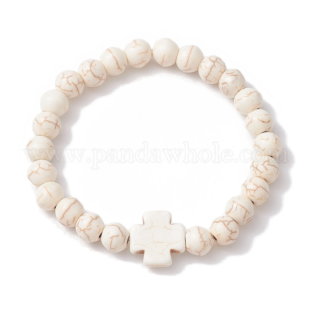 Эластичные браслеты из синтетического магнезита 8мм с круглыми бусинами, браслеты с крестом из синтетической бирюзы для женщин и мужчин