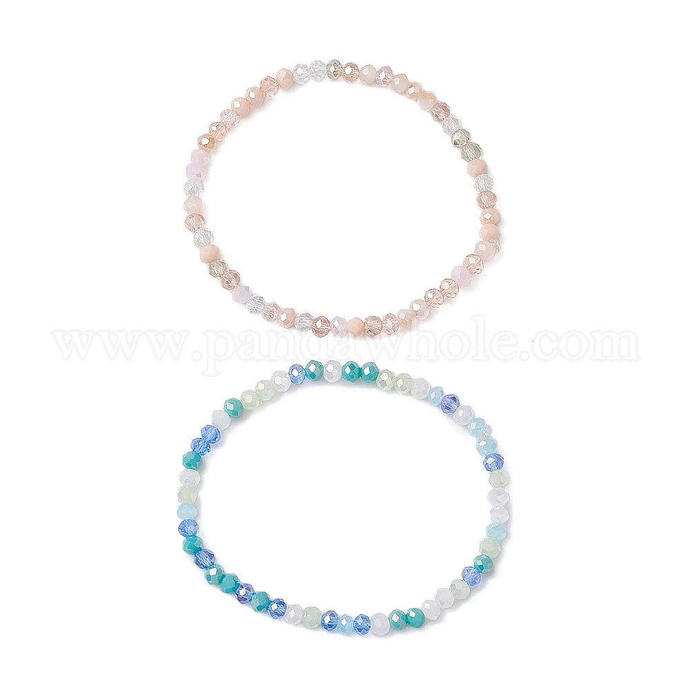 2 шт. 2 цвета, гальванические граненые рондели, стеклянные эластичные браслеты из бисера, наборы, составные браслеты для женщин