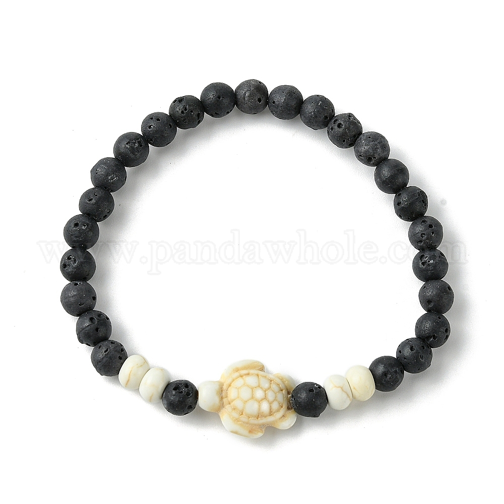 Летние пляжные черепахи из синтетической бирюзы и синтетического лавового камня, круглые эластичные браслеты из бисера для женщин (02WG4B)