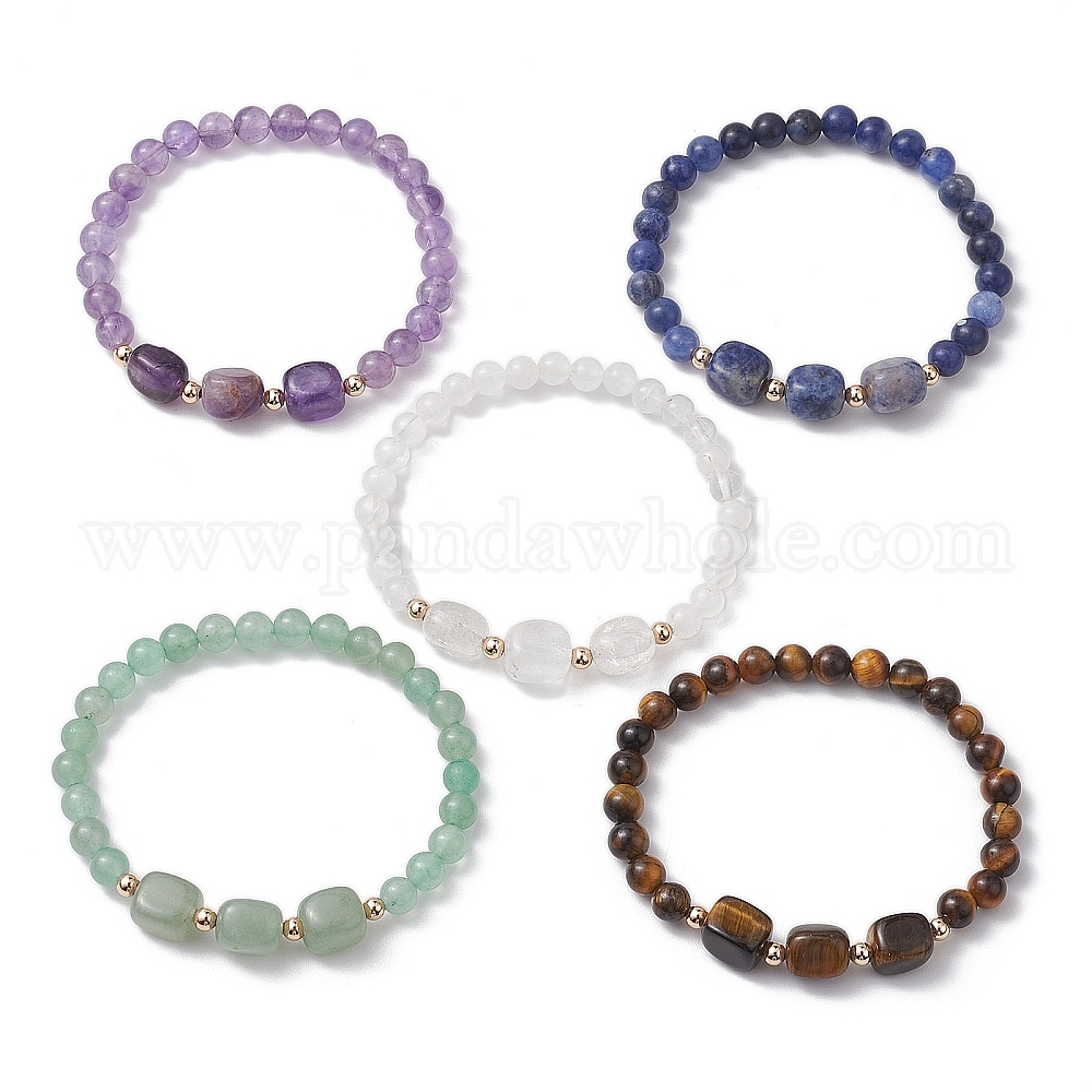 Эластичные браслеты в форме кубиков с драгоценными камнями и круглыми бусинами