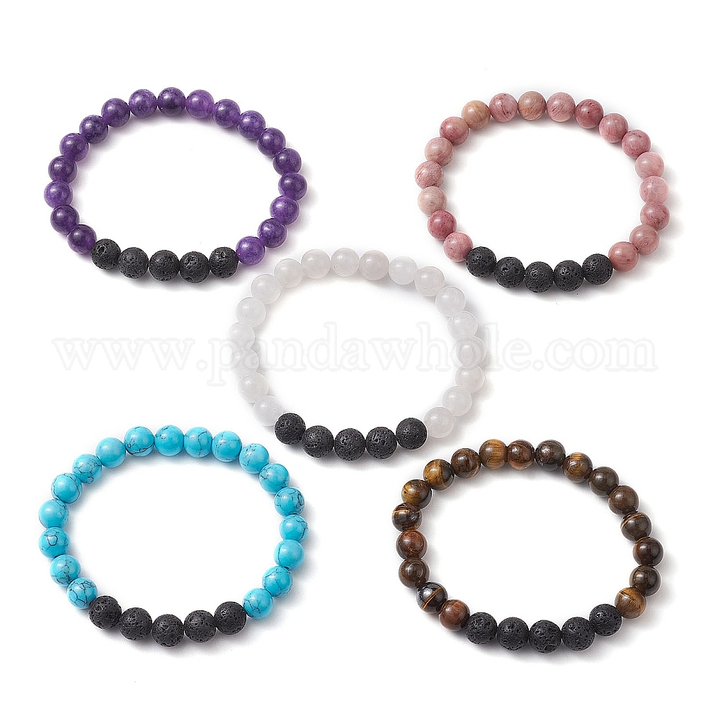 Круглые браслеты из натурального лавового камня и драгоценных камней, расшитые бисером