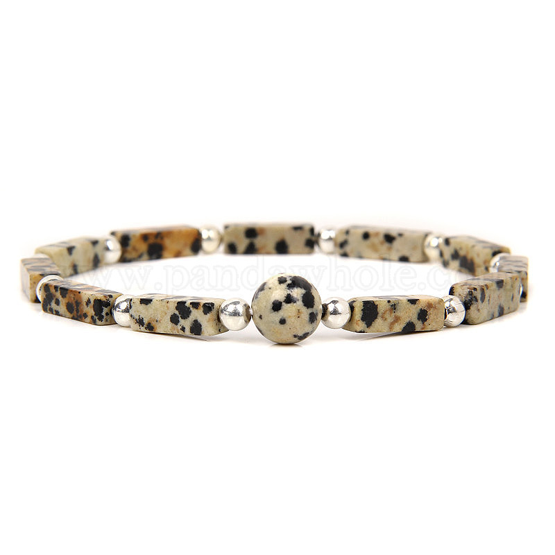 • Далматинских Джаспер Браслеты из натуральной далматинской яшмы с прямоугольными и круглыми бусинами для женщин и мужчин, 7-1/2 дюйм (19 см)