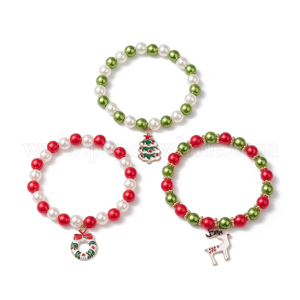Эластичные браслеты из АБС-пластика с имитацией жемчуга, с подвесками из эмали и сплава