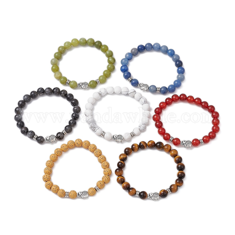 7шт 7 цвета натуральные смешанные драгоценные камни наборы браслетов, браслеты из сплава слона для мужчин и женщин
