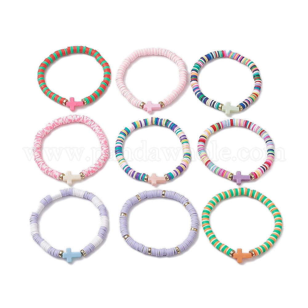 9шт. наборы браслетов из полимерной глины и акриловых бусин с крестообразным плетением для женщин