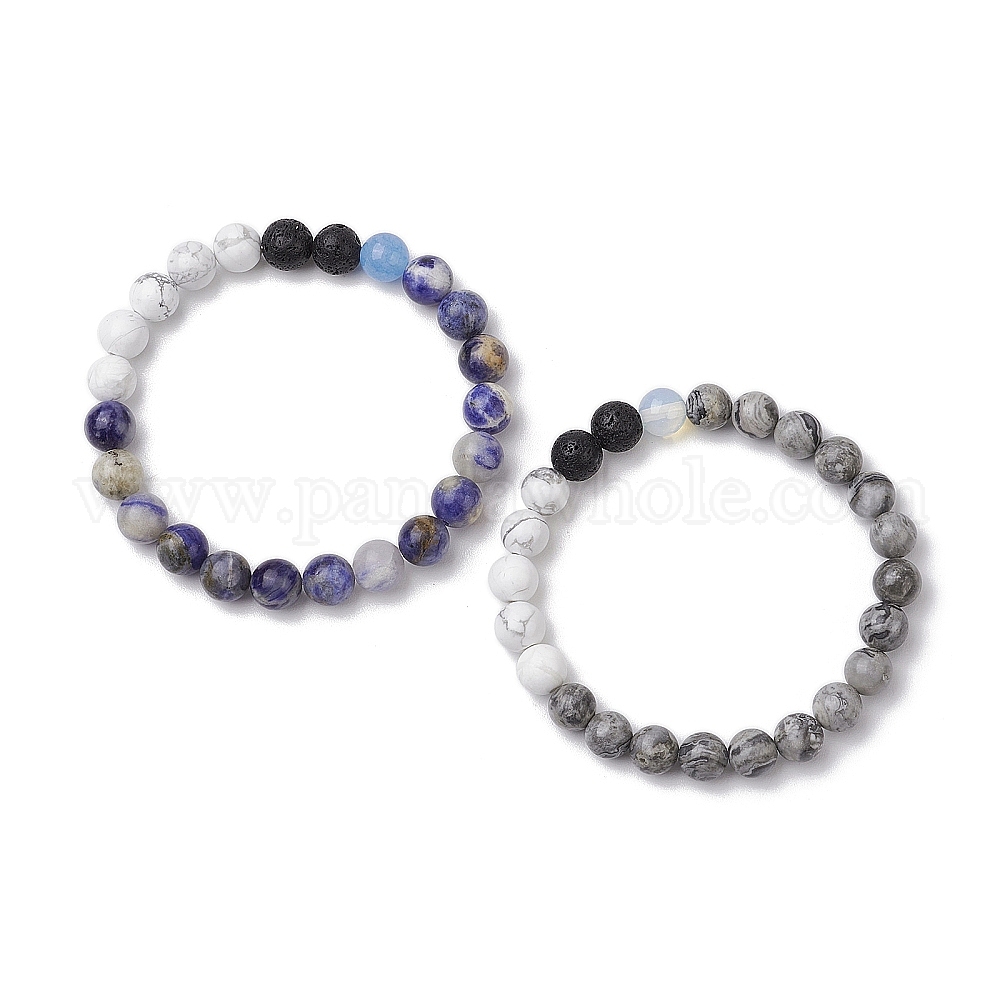 2 шт. круглые браслеты из натуральных и синтетических драгоценных камней для женщин