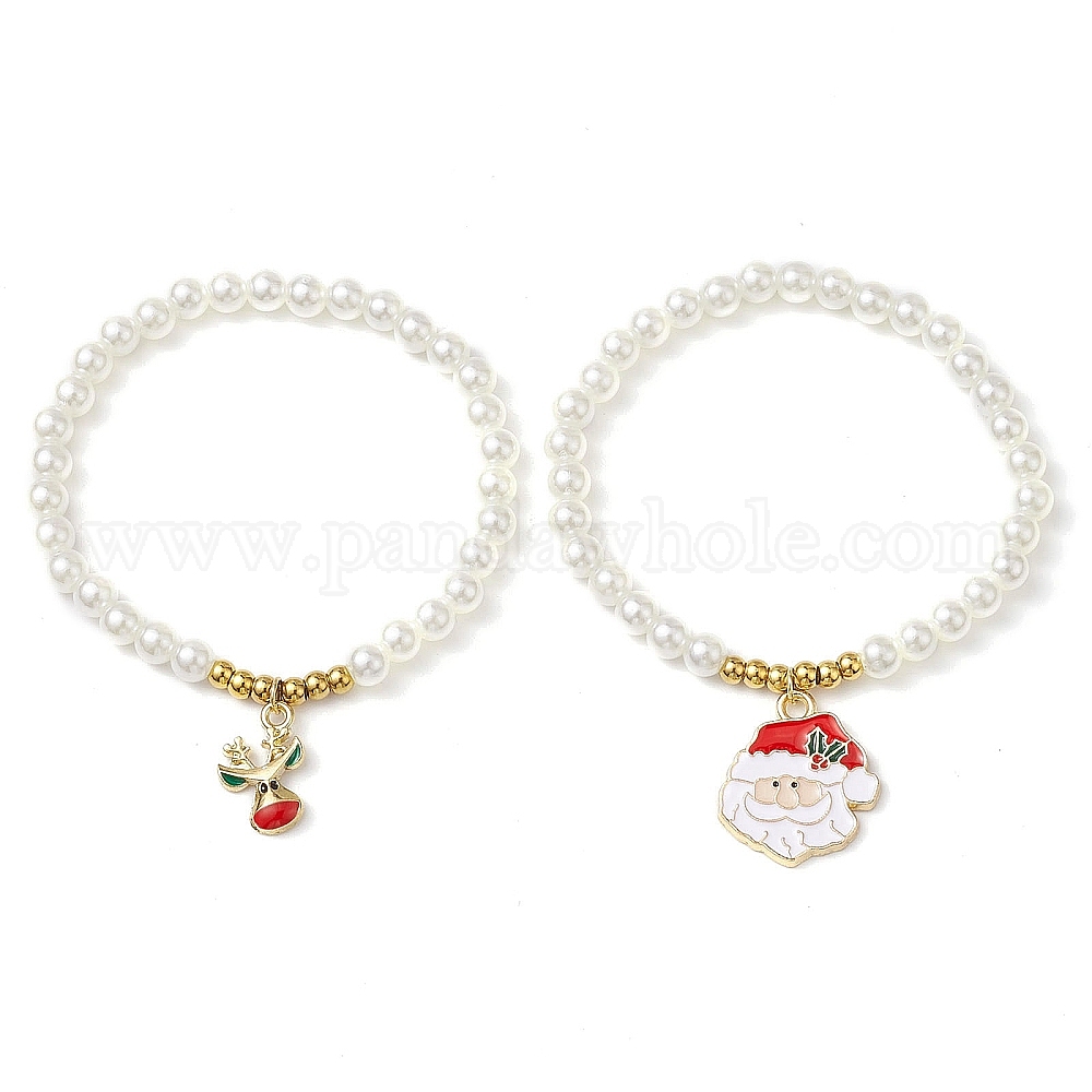 АБС-пластик имитация жемчужных бусин эластичные браслеты, браслеты шарма сплава эмали темы рождества