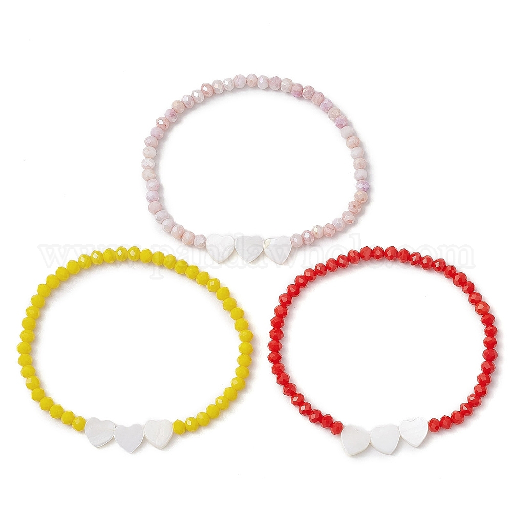 3шт 3 стили стеклянные бусины браслеты наборы для женщин, с натуральными пресноводными ракушками