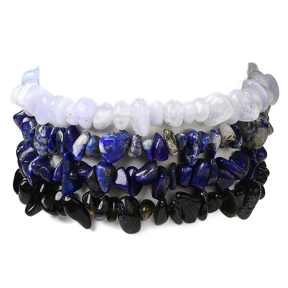 • Смешанные камни 4шт. набор браслетов из бисера и драгоценных камней, внутренний диаметр: 2-1/8 дюйм (5.5 см), 4 шт / комплект
