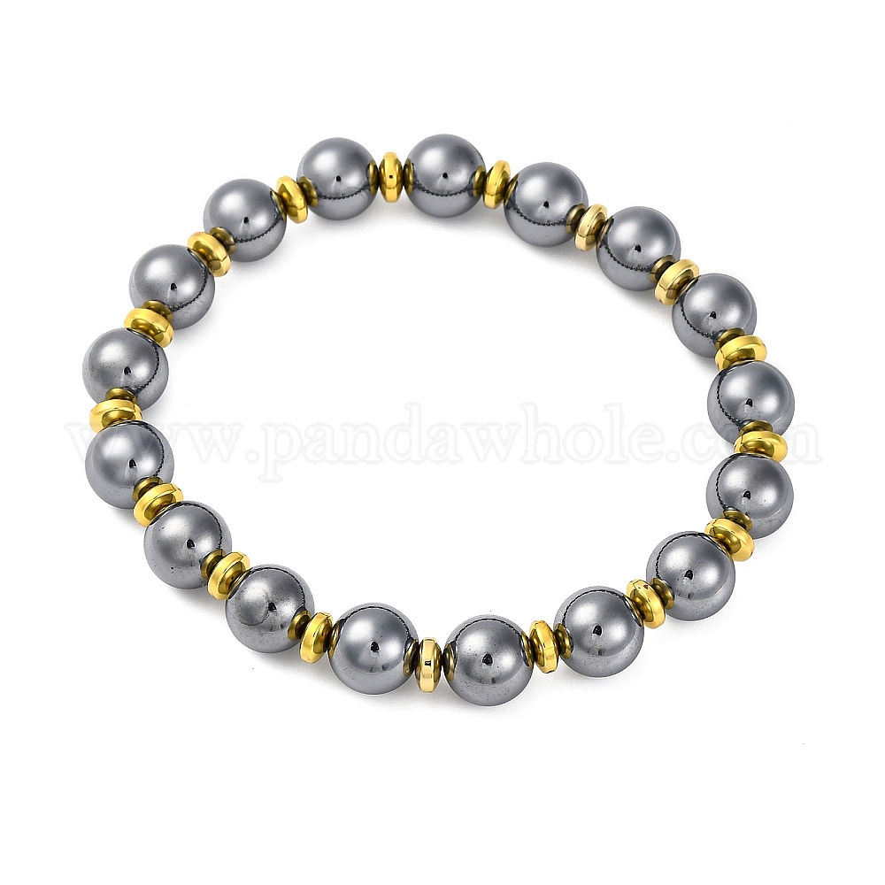Браслеты из натуральных терагерцовых камней и немагнитных синтетических гематитовых бусин, круглые