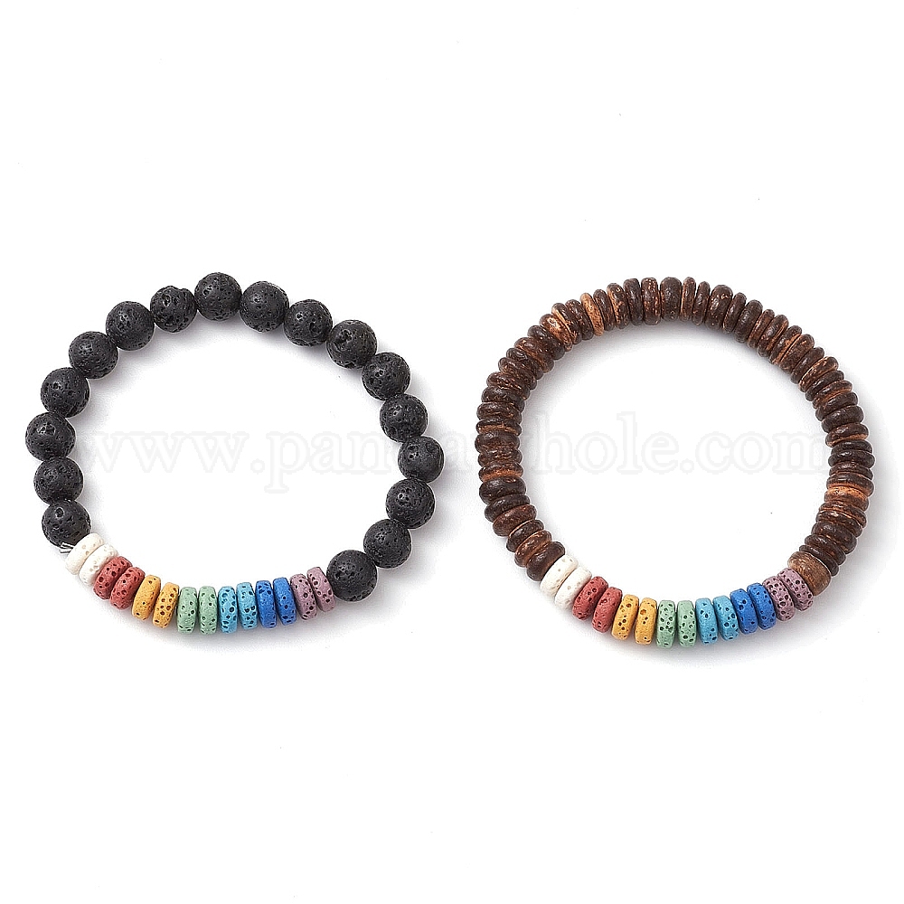 • Смешанные камни 2шт. браслеты из натуральных бусин из лавы и кокоса, внутренний диаметр: 2-1/8 дюйм (5.5 см)