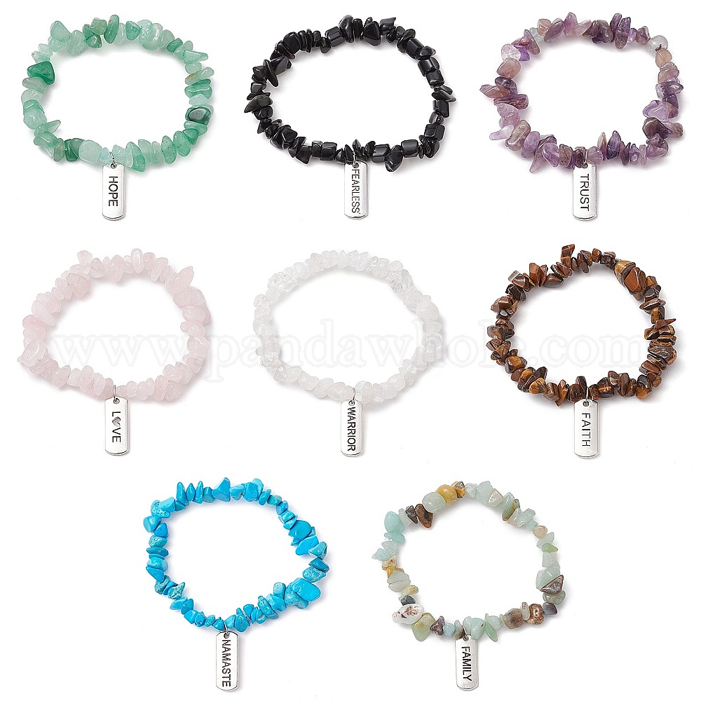 8шт. браслеты из натуральных и синтетических драгоценных камней, с подвесками из сплава и словом