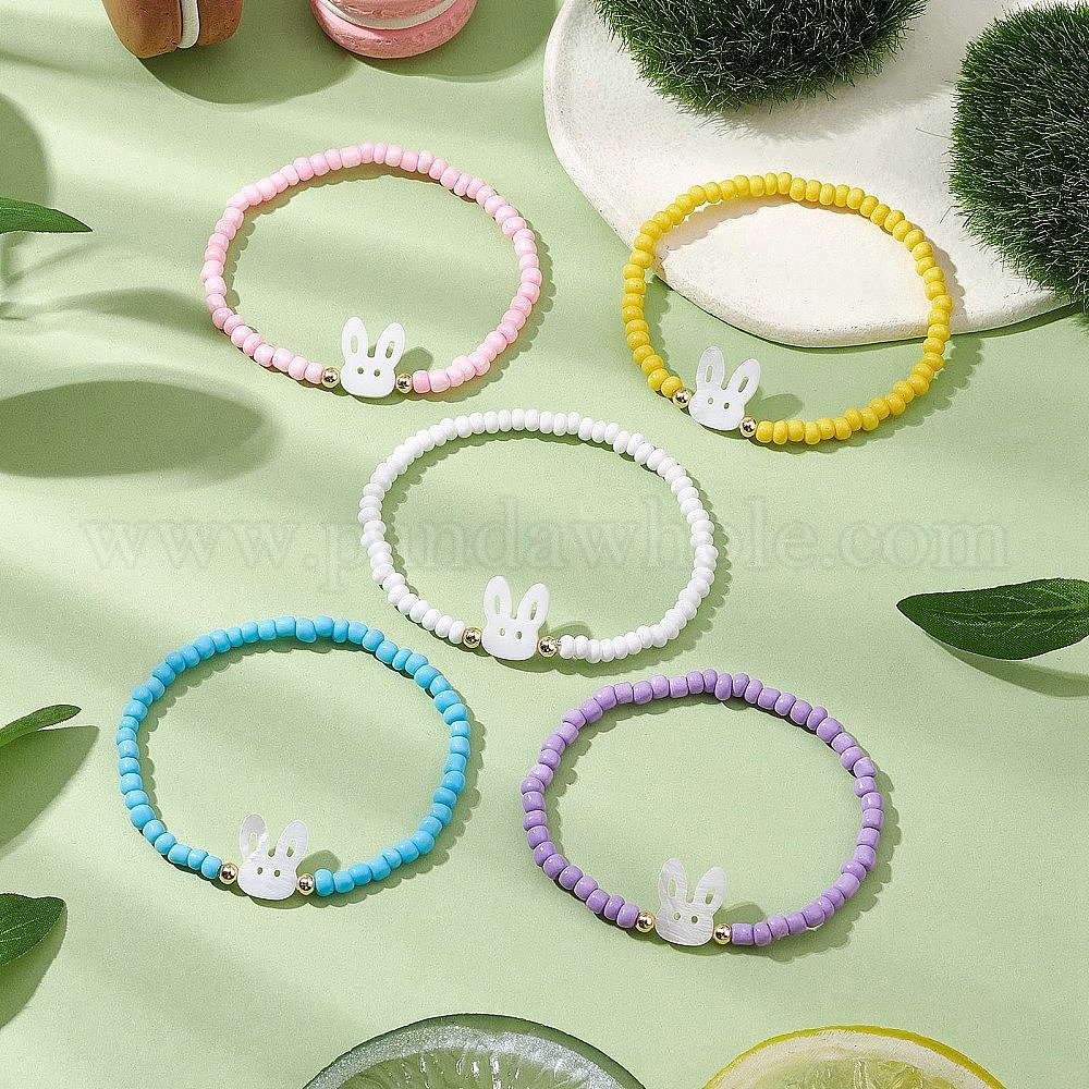 Стрейч-браслеты из бисера, с натуральными пресноводными ракушками, кролик