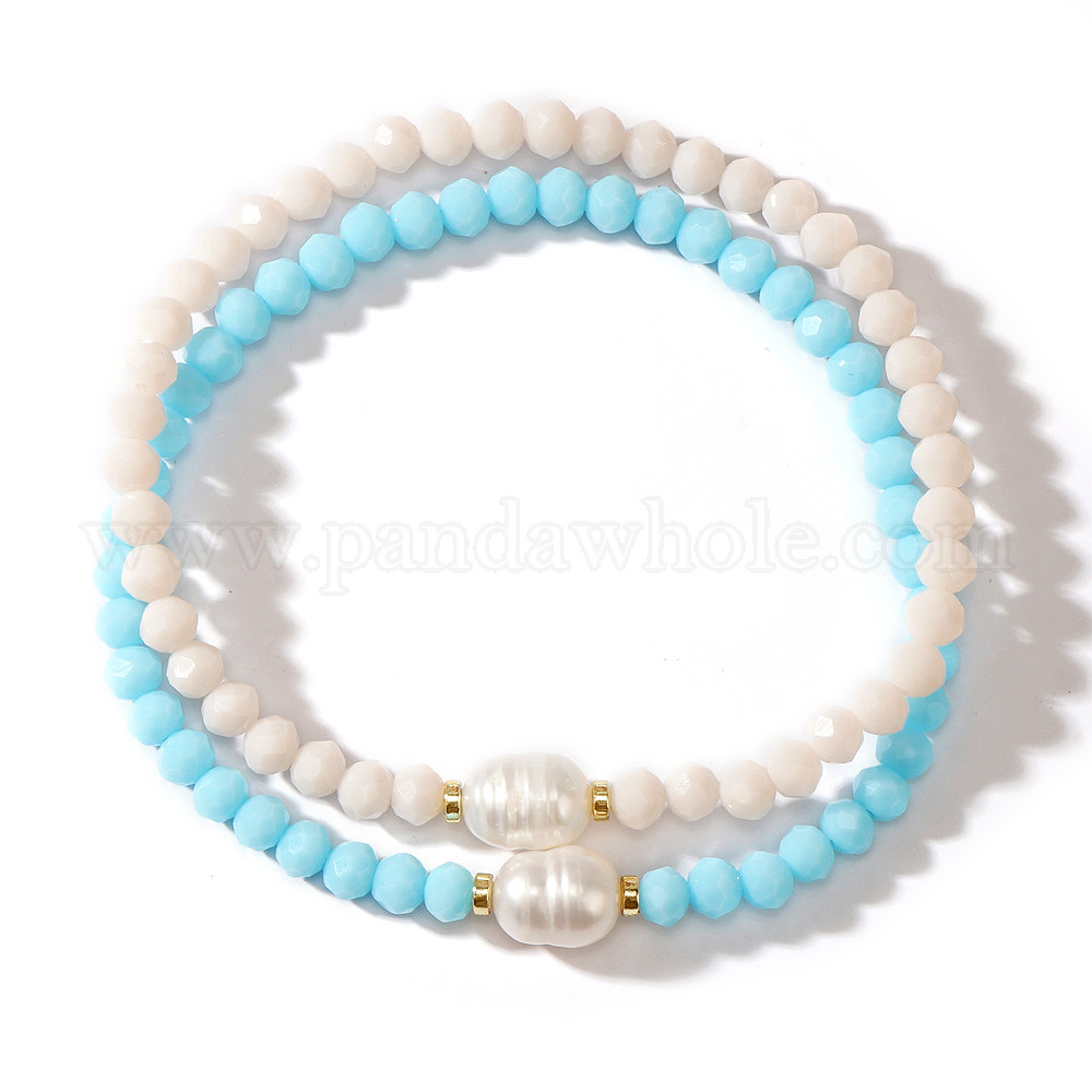 Браслеты-бусины из стекла граненые рондель для женщин, с имитацией жемчуга