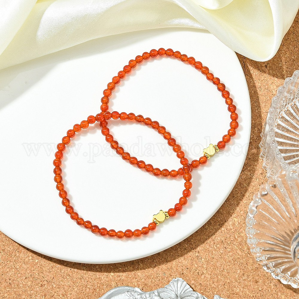 • Красный Агат Натуральные сердоликовые бусины эластичные браслеты для женщин и мужчин, с латунной бисера, медведь, внутренний диаметр: 2-1/2 дюйм (6.25 см)