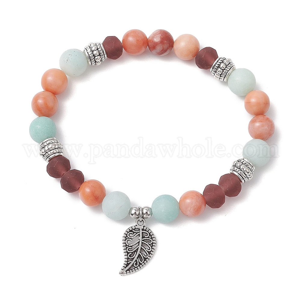 Браслеты из натурального амазонита, розового авантюрина и стеклянных бусин для женщин и мужчин, лист (02ZCZ4)