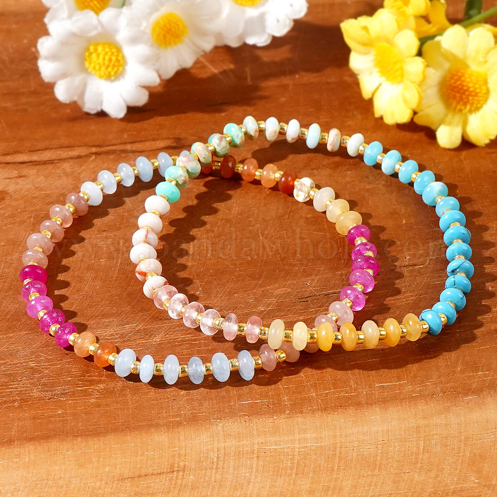 Браслеты-бусины-рондель в стиле бохо, составные браслеты для женщин, с натуральным смешанным драгоценным камнем (02ZP7E)