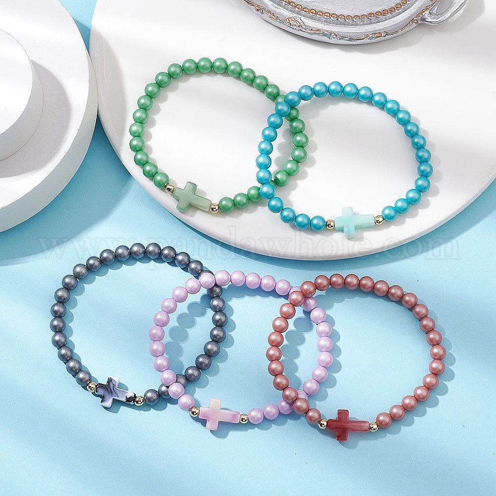 5шт 5 цвета акриловые бусины эластичные браслеты для женщин мужчин, крестик