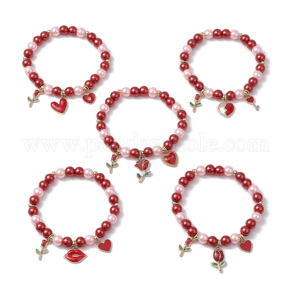 Стеклянные браслеты-бусины на день святого валентина из жемчуга для женщин, с сплава прелести