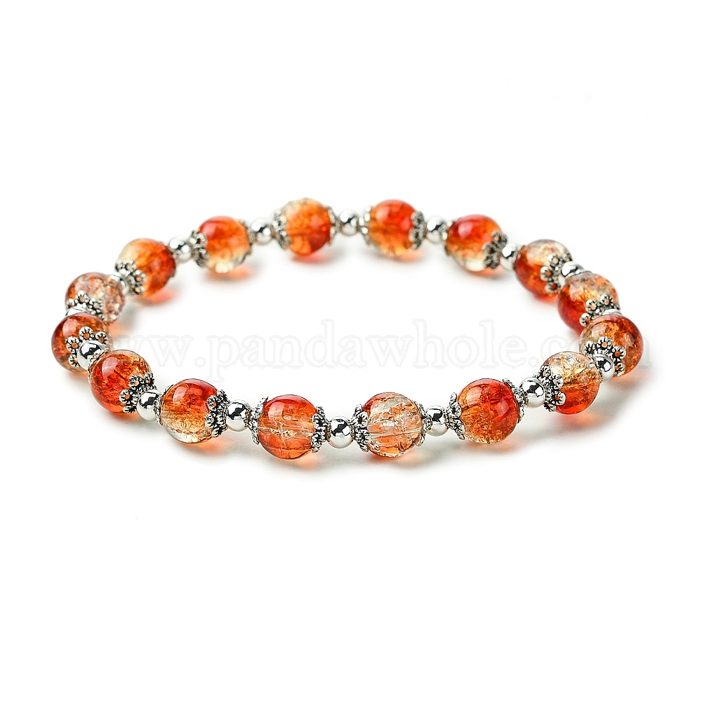 Круглые стеклянные бусины с трещинами, растягивающиеся браслеты, с латунной фурнитурой