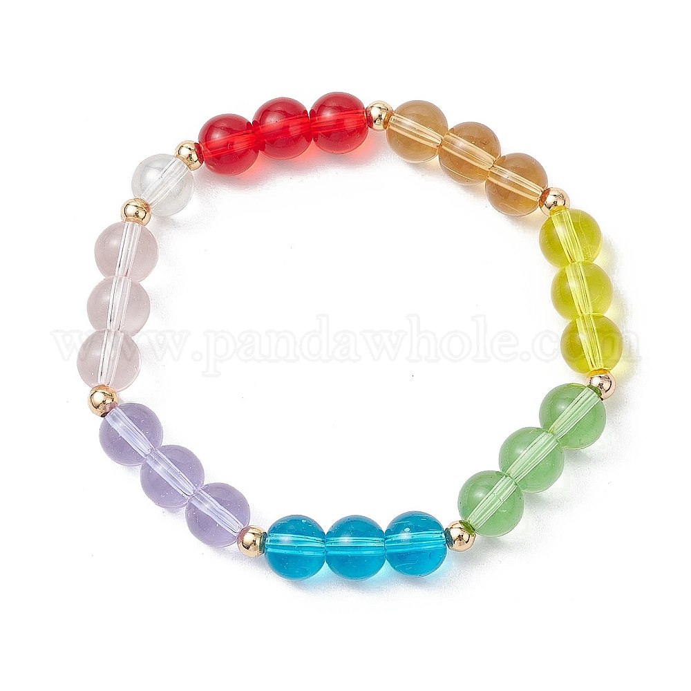 Стеклянные круглые бусины эластичные браслеты для женщин и мужчин, с латунной бисера