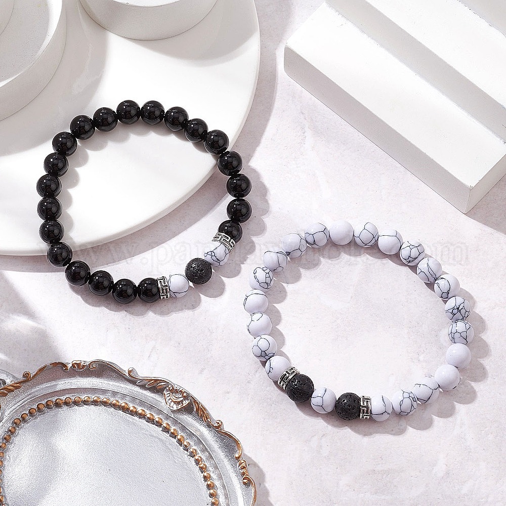 2шт. браслеты из круглых бусин натурального черного оникса и говлита