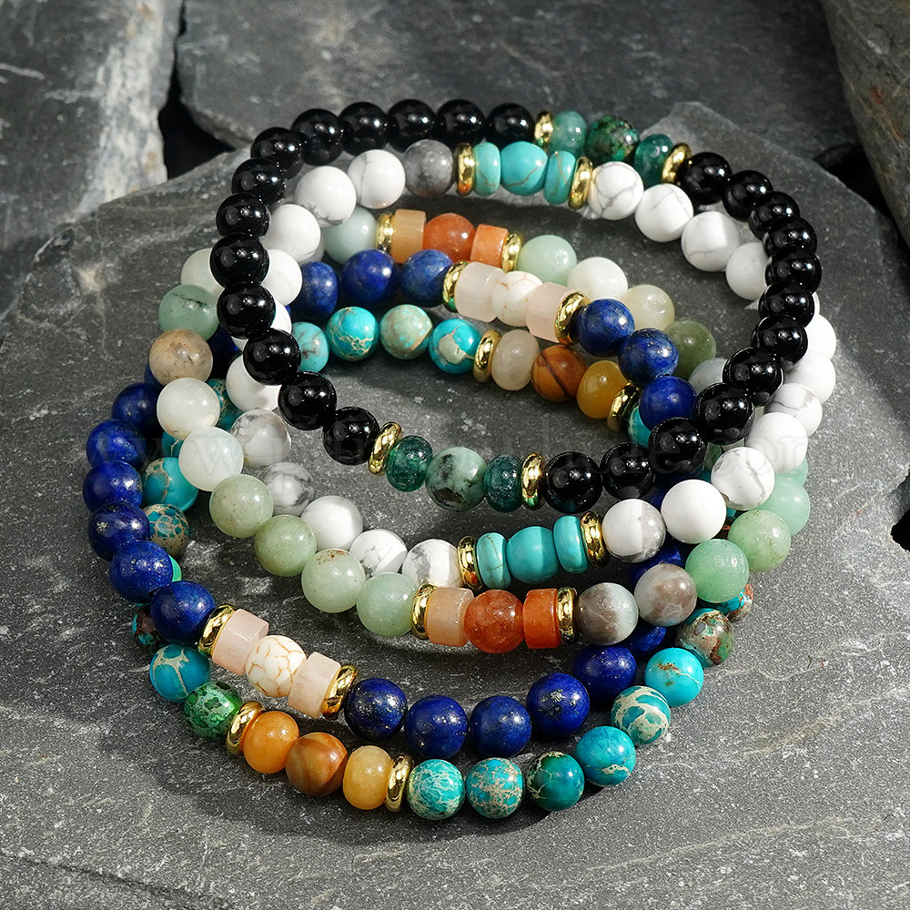 Богемные браслеты из натуральных драгоценных камней с бусинами