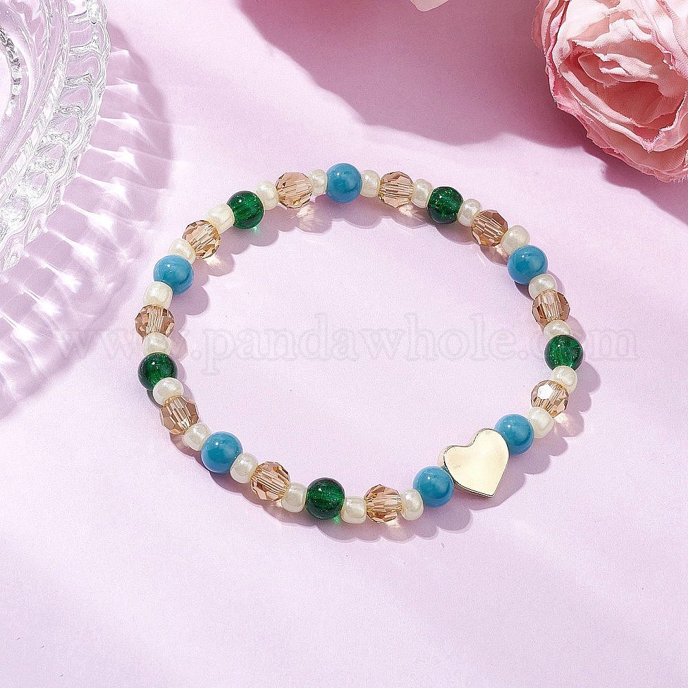 Стеклянные бусины растянуть браслеты, с бусинами сплава, сердце для женщин мужчин