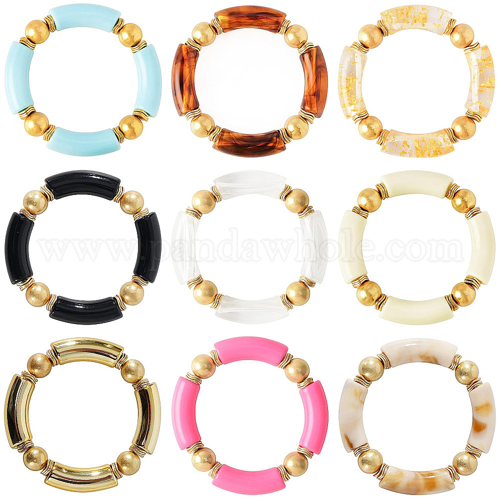 Модные женские массивные изогнутые акриловые трубчатые бусины растягивающиеся браслеты