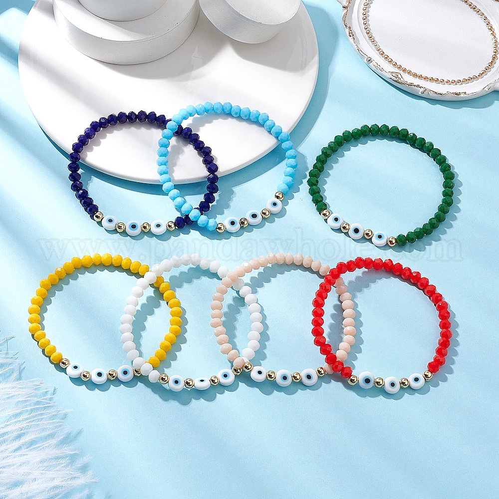 7шт. стеклянные бусины тянущиеся браслеты, ручная работа сглаз лэмпворк плоские круглые бусины украшения для женщин мужчин, граненые