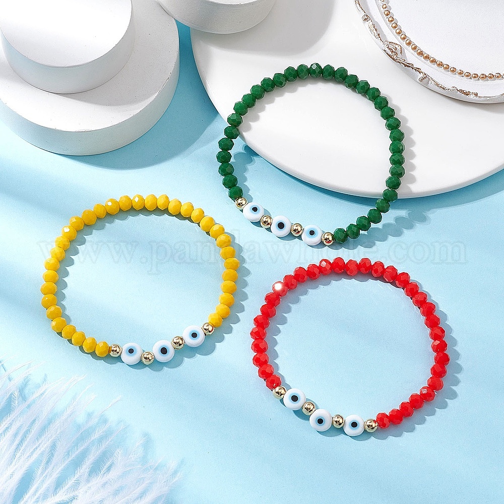 3шт. стеклянные бусины тянущиеся браслеты, браслеты из плоских круглых бусин ручной работы от сглаза для женщин и мужчин, граненые