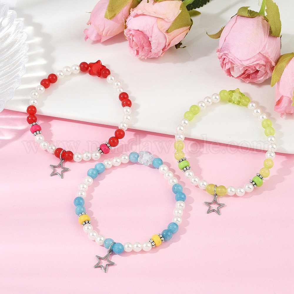 Окрашенный круглый натуральный малайзийский нефрит с абс пластиковыми бусинами из жемчуга эластичные браслеты для женщин, 304 из нержавеющей стали звезды шарм браслеты