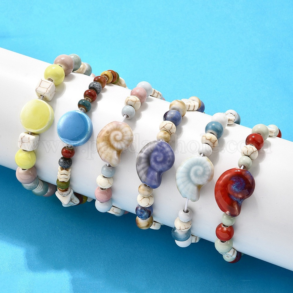 Браслеты из фарфоровых бусин ручной работы и синтетических бусин говлита для женщин, с фарфором и шармом из говлита