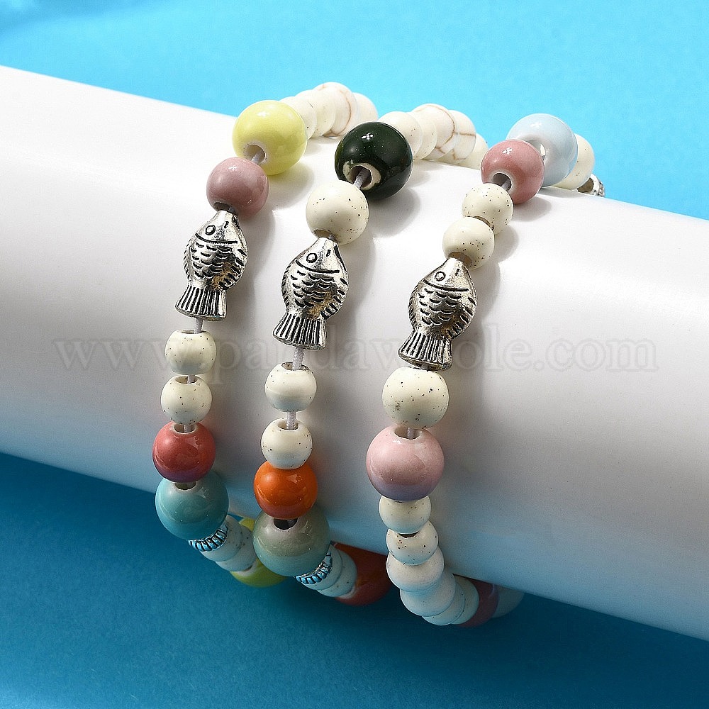 • (52) Непрозрачная лаванда Фарфоровые бусины и синтетические бусины говлита эластичные браслеты для женщин, с подвеской в виде рыбки из сплава и синтетической морской звезды из говлита, разноцветные, внутренний диаметр: 2 дюйм (5 см)