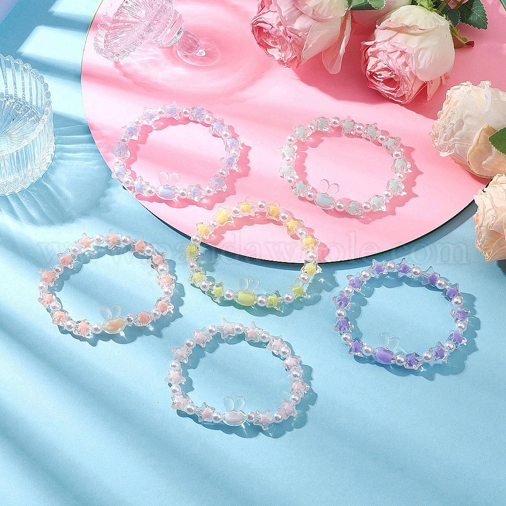 6шт 6 цвета прозрачные акриловые бусины стрейч для женщин, звезда с кроликом, с абс пластмассовыми жемчужными бисером