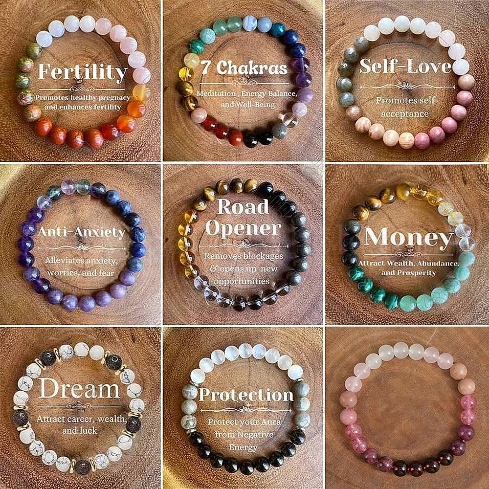 • Помидор Браслеты из круглых бусин из натурального агата, унакита, кварцевого кристалла и розового кварца, bleesing фэн-шуй браслеты для мужчин и женщин, помидор, внутренний диаметр: 2-1/4 дюйм (5.7 см)