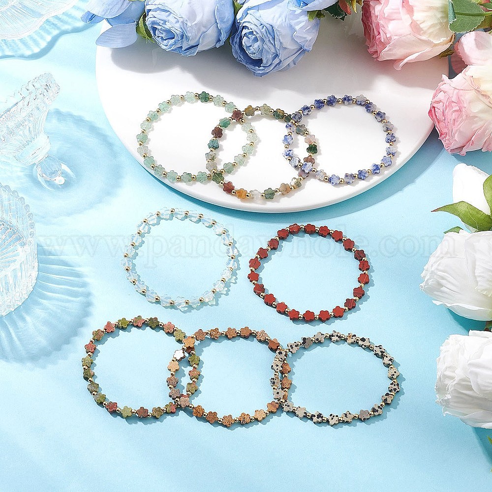 8шт. браслеты из натуральных и синтетических драгоценных камней для женщин, цветка сливы, с латунной бисера