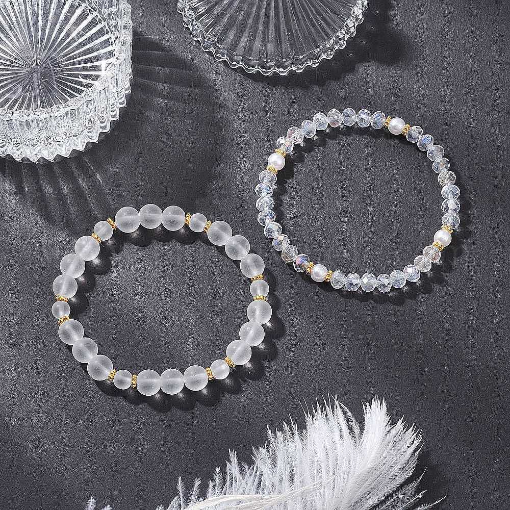 2шт 2 стили стеклянные бусины эластичные браслеты для женщин, круглые и круглые