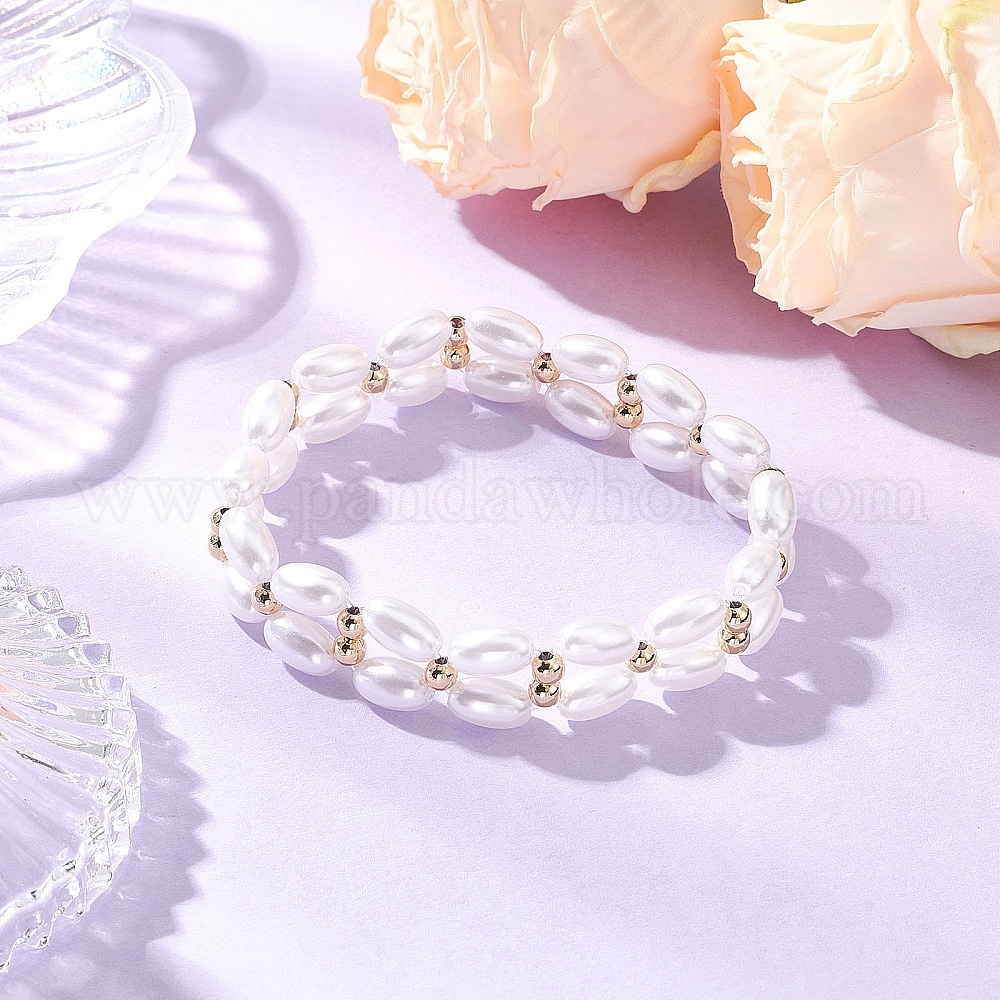 Эластичные браслеты из АБС-пластика с имитацией жемчуга и бусинами, овальные