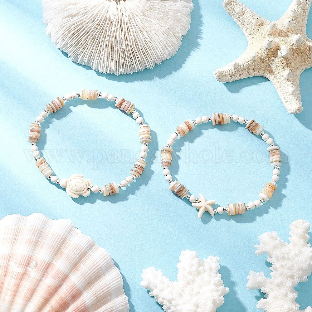 Синтетический бирюзовые бисером браслеты простирания, с натуральной пресноводной раковиной