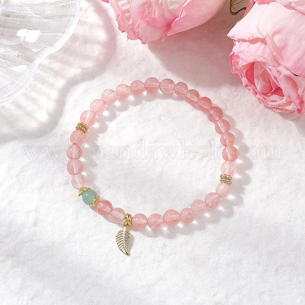 Браслеты из натурального зеленого авантюрина и синтетического вишневого кварца (0351HX)