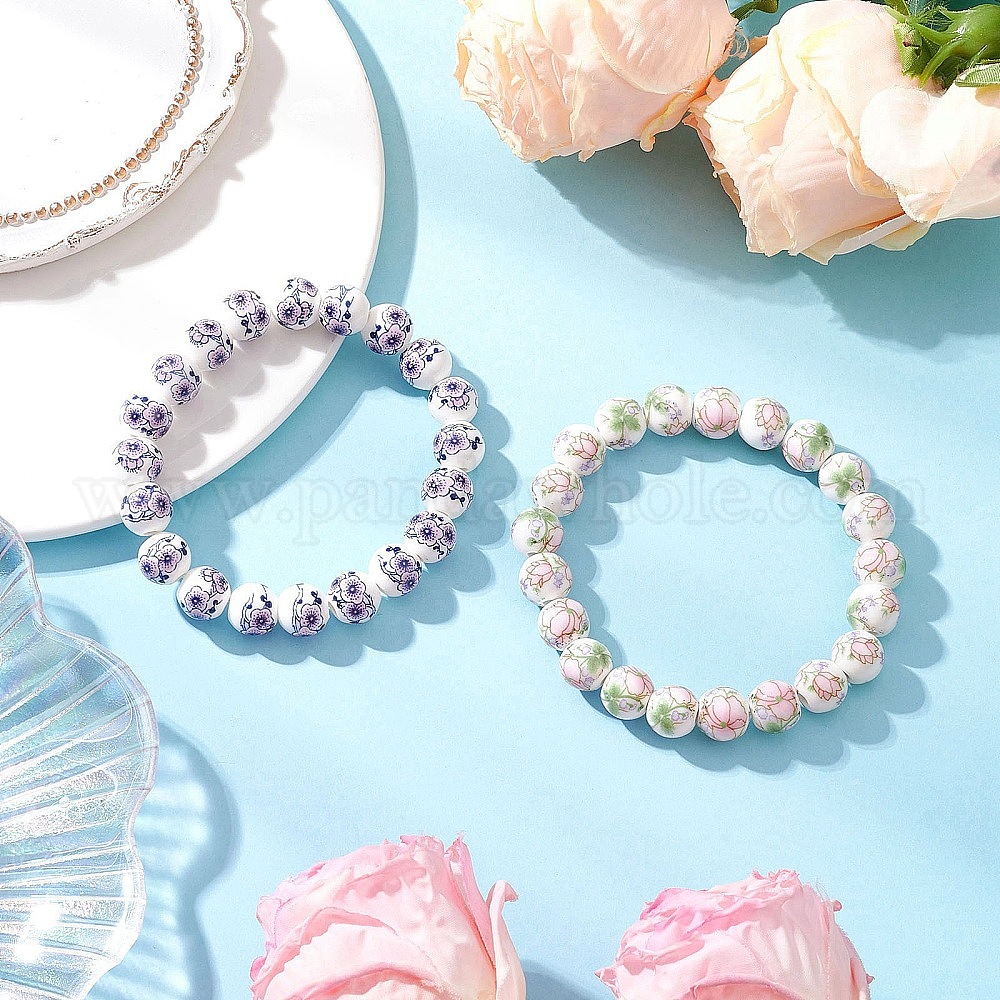 Ручная работа цветочные узоры фарфоровые керамические круглые бусины эластичные браслеты для женщин