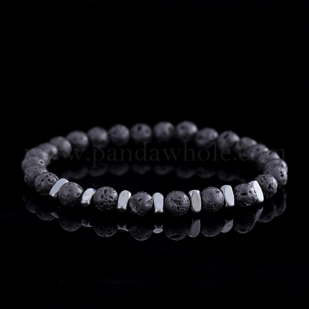 Браслеты из натуральных круглых бусин из лавы для мужчин, с синтетическими немагнитных гематита бисера
