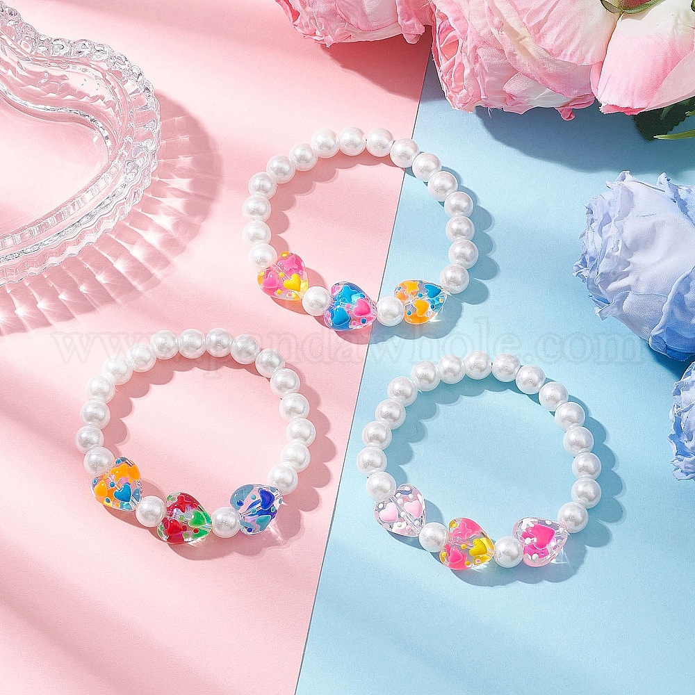 Браслеты ручной работы из стеклянной эмали и стеклянных жемчужных бусин, эластичные браслеты для девочек, сердце и круглый