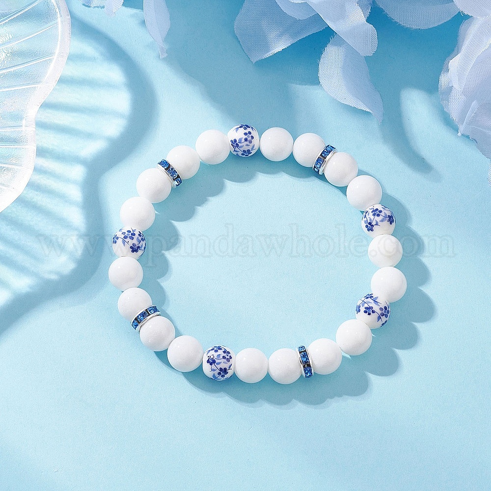 Браслеты из натуральных круглых бусин Машан, окрашенных и нагретых, для женщин, круглые, с фарфоровыми керамическими бусинами с цветочным принтом