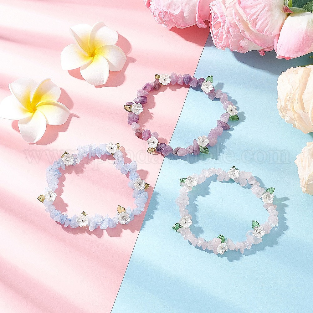 Женские браслеты из бусин с натуральными драгоценными камнями, с бусинами в виде цветочков из АБС-пластика, имитирующими жемчуг