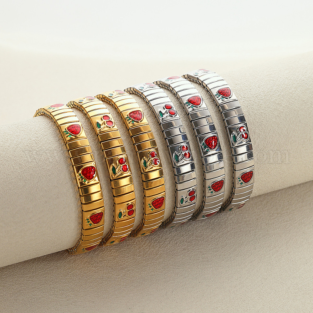 304 эластичные браслеты из нержавеющей стали с эмалью для женщин, вишня и клубника