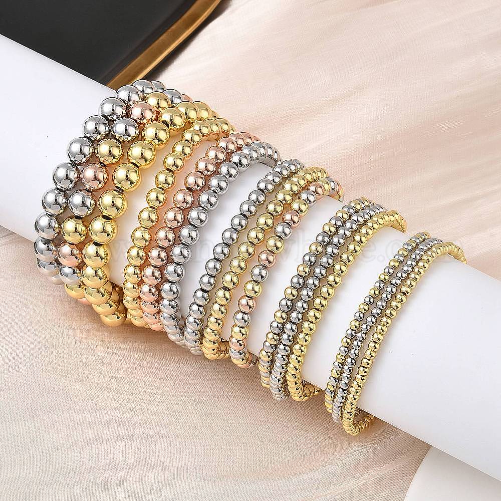 Латунные круглые бусины эластичные браслеты для мужчин и женщин, стойки покрытие, долговечный, без свинца и без кадмия