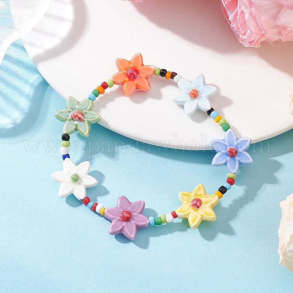 Эластичные браслеты ручной работы из фарфора и стеклянных бусин для женщин, (038D3S)