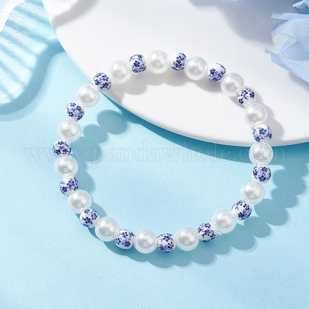 Браслеты ручной работы из фарфора, керамики и АБС-пластика с искусственным жемчугом и бусинами с цветочным принтом для женщин, круглые